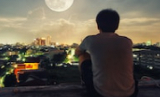 A man stand alone watch the full Moon
